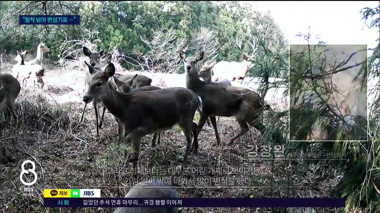 "(꽃사슴이) 어느 지역 할 것 없이 지금 너무 많이 퍼져 있어요. 한라산 일대는 거의 다 있다고 봐야 되고. 그 외 중산간 지역에도 지금 상당히 많은 숫자가 분포돼 있는 것으로 저희는 확인했습니다."